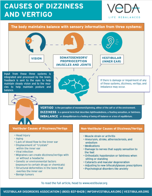 Click to download PDF: Causes of Dizziness and Vertigo VeDA Infographic